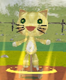 Mews are small yellow stuffed toy cats (who resemble rag dolls) that were first introduced in Monster Rancher 1 under the name Nya, and were obtainable only after buying a special doll from the Items Shop. They have appeared in every Monster Rancher game to date, with exception of Monster Farm Lagoon. In Monster Farm Online, a giant Mew set up on a rolling board is used as your opponent in the game tutorial to teach you how to battle wild monsters.