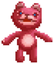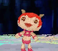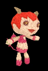 A feminine breed of cat-doll monster. When it originally appeared, it was made of wood and had curved horns on its head instead of ears. Its facial features were far more doll-like than cat-like. But eventually, it was renamed and redesigned with short red hair and a cat-like figure. Later, it was redesigned again with stuffed wings and a pincushion-like face. The horns also made a comeback.