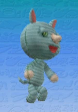 A sturdy breed of rhinoceros-doll monster that has nylon skin and is filled with beads like a Template:Ns. It has a horn on its face where its nose would be, and it always has a sleepy look to it.