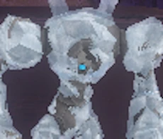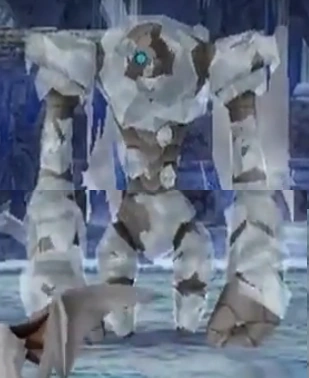 A non-playable robot monster, half frozen in ice, only found in Monster Farm Lagoon as an enemy monster. It is classified under the Bain family of enemies, and its name is a bit misleading, because Satanbain has nothing to do with fire. Legend is that it was an experiment that broke itself out of stasis, and because of its electrical and ice powers, some have classified it with a Tri-Yak sub-type. Because monsters are not combinable in the Online series however, this is impossible to determine.