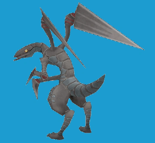 A new monster in the Monster Farm Lagoon series who bears a strong resemblance to the monster Zan. Its earlier designs were even more reminiscent of this earlier species, with the large blades attached to the hands and the tail being less distinct. It is clearly an arthropod though, almost centipede-like.