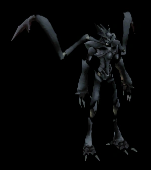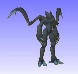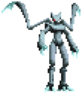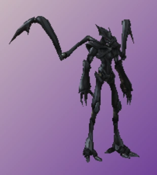 Zans are tall, black-shelled androids with two appendages on their backs that resemble the arms of a praying mantis. They are merciless warriors created by ancient science to mimic the fighting style of the ninja, and they say Zans are even more intelligent than humans are. They attack using the claws extending from their backs, and also make good use of their baffling speed.